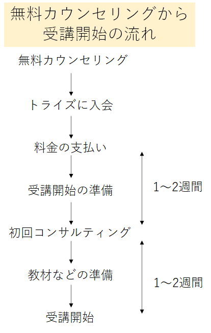 トライズに入会を決めた後、以下の流れで受講を開始します。