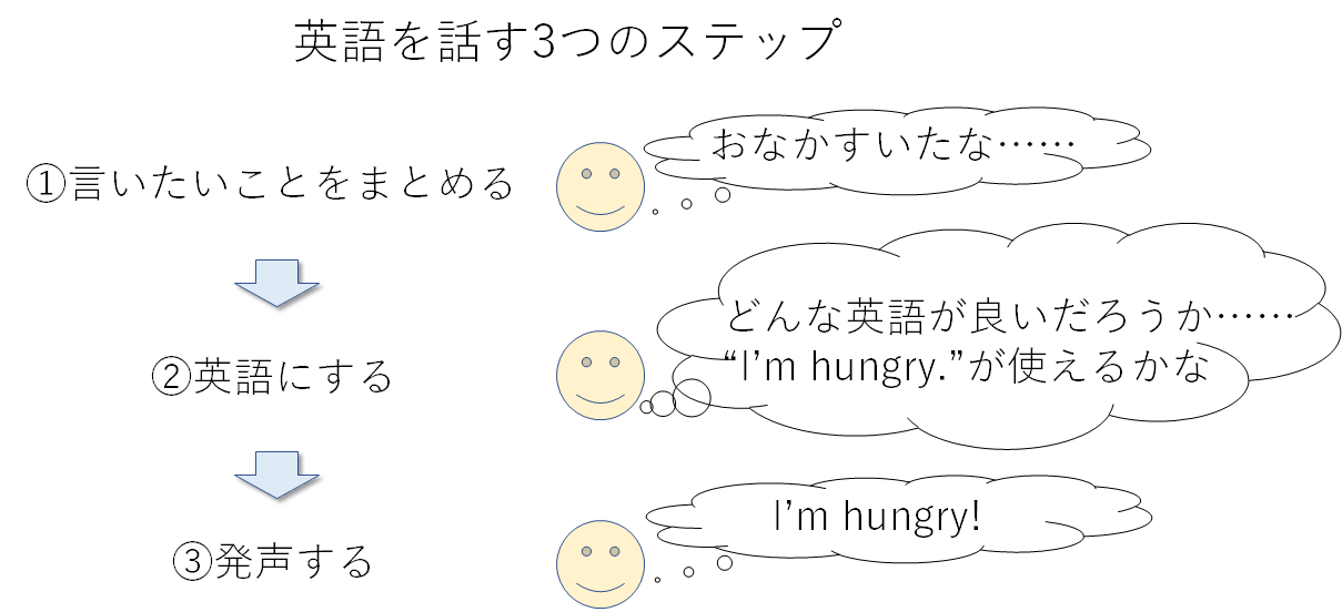 この3ステップを理解することで、スピーキング力を伸ばす方法がわかるようになりますよ。