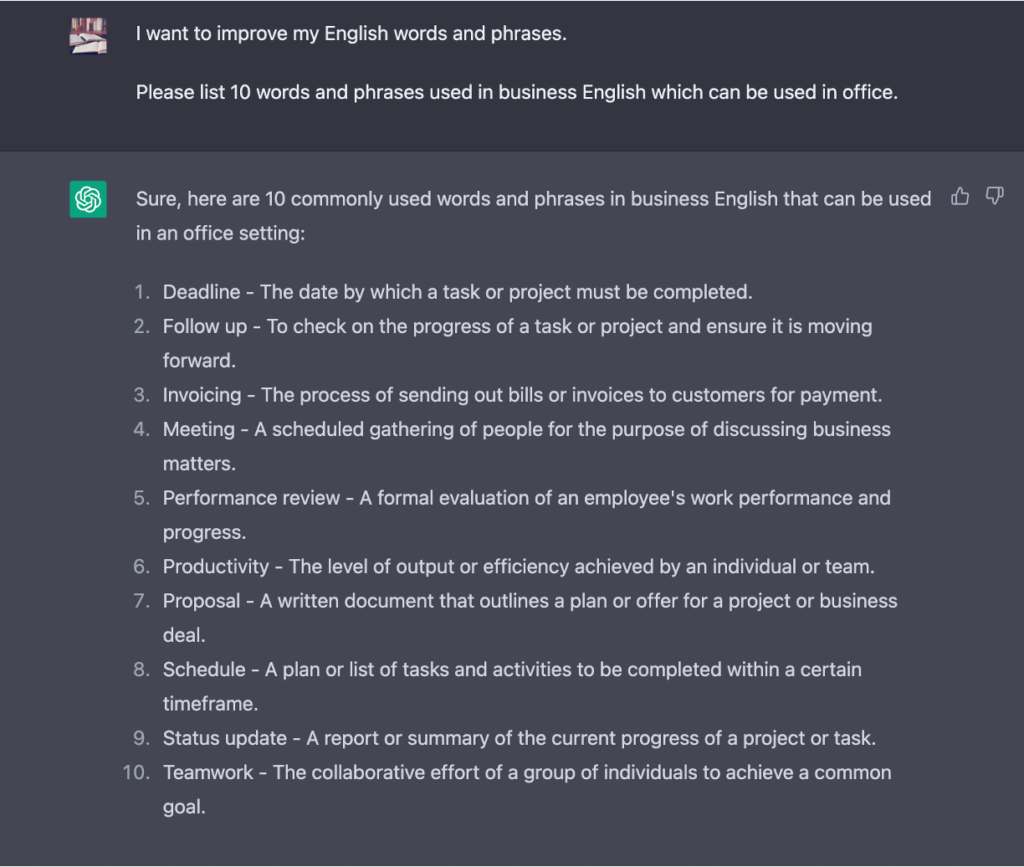 ⇨ChatGPTをビジネス英語に活用する方法と注意点|明日から使える!