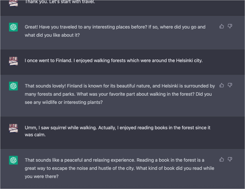 実際にChatGPTとチャットで英会話をした内容を紹介します。