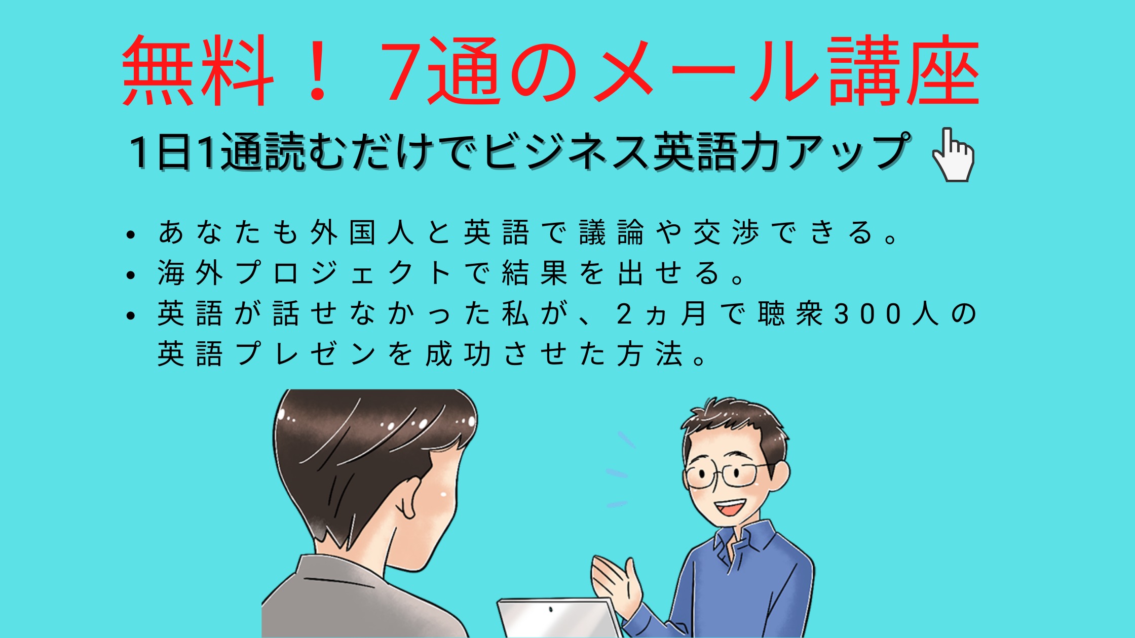 無料の7通のメール講座では、私が試行錯誤して見出した「ビジネス英語を最短で身につける3つの方法」についてお伝えします。
